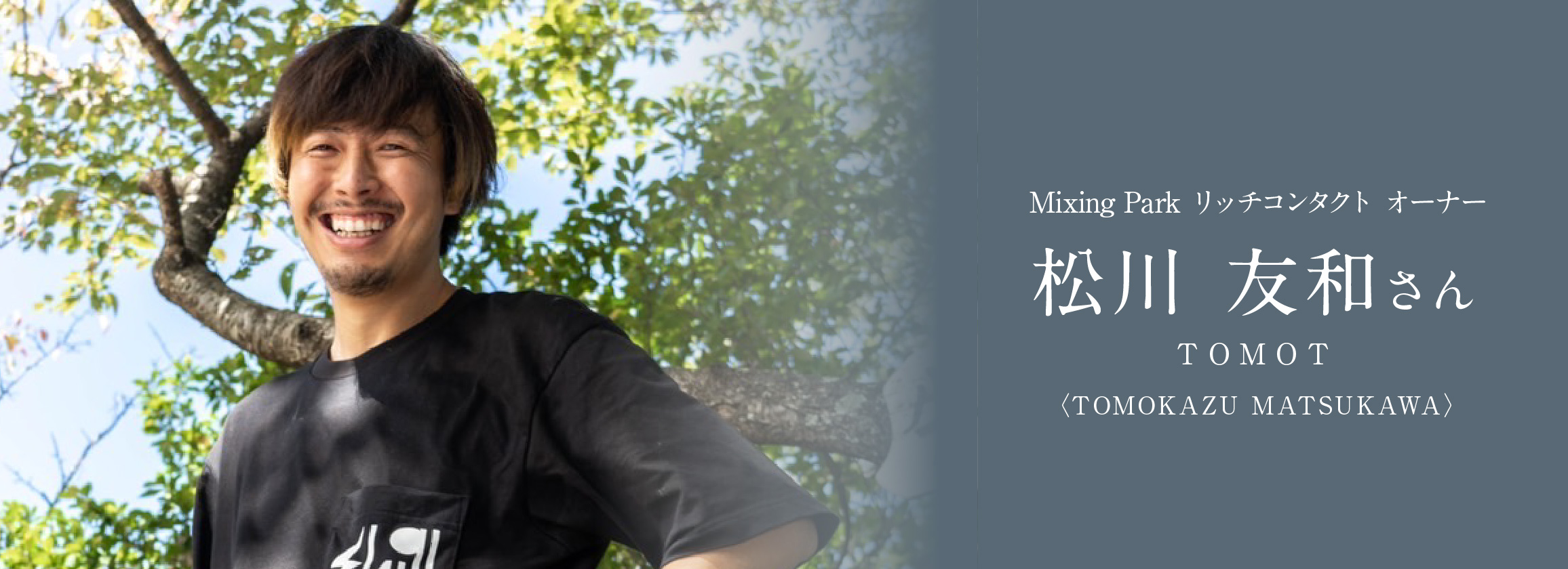 芸能プロダクションCocoro-to(ココロト)の代表として、タレントの育成やイベントプロデュースに携わる傍ら、自身もタレントMCとして活躍するTOMOT(トモティー)こと松川さん。