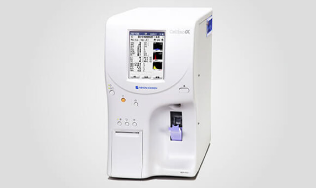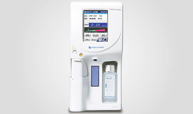 白血球や赤血球、血小板などを測定する装置です。主に、感染症や貧血が疑われるときに検査を行います。検査当日に結果説明が可能です。