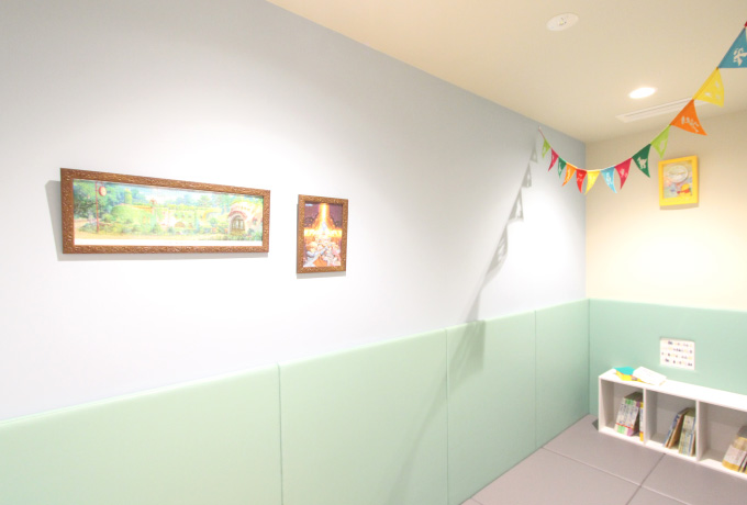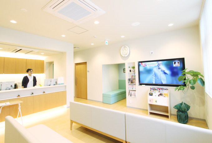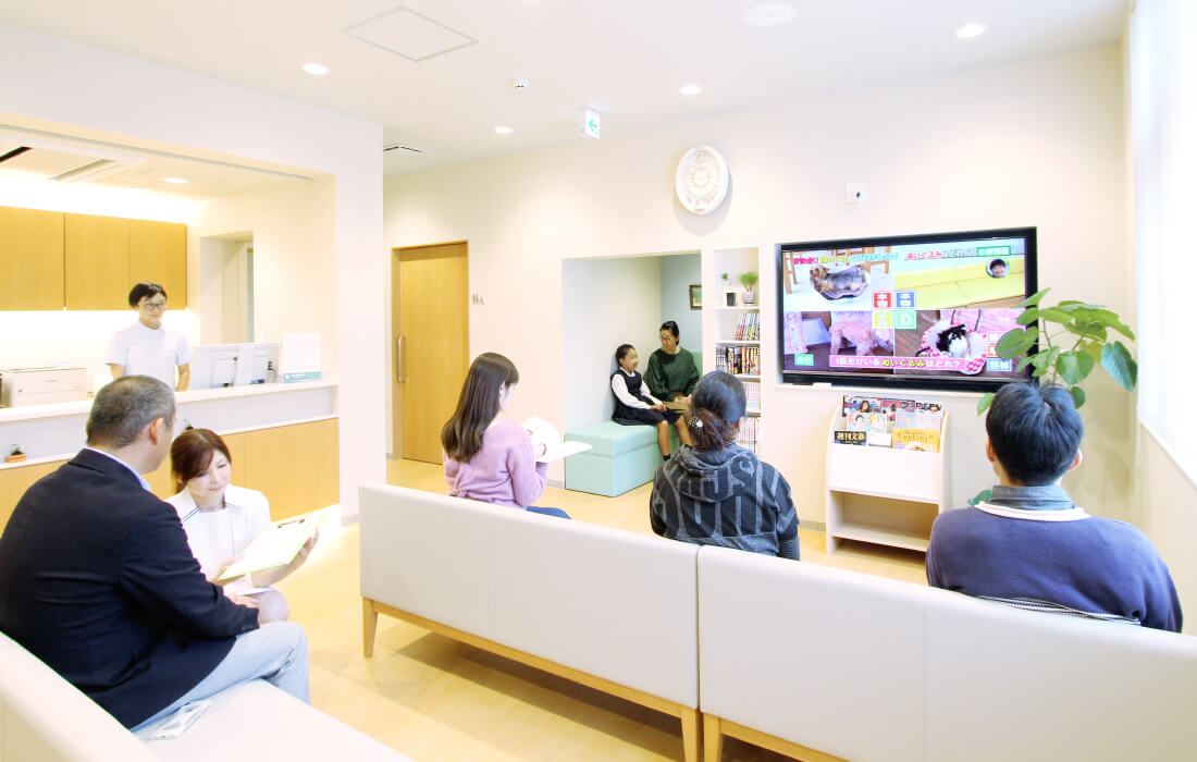 待合室は、観葉植物、熱帯魚がいる水槽を置き、リラックスできる環境をつくりました。キッズルームも用意しましたので、お子様連れの方でも気軽に来院していただけます。また、インターネット環境も整備しました。
