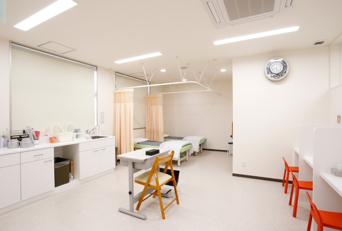 クリニック内はバリアフリーで、車イスやベビーカーの方もそのままご来院いただけます。お子さま連れの方は、待合室のキッズスペース、トイレのおむつ交換台もご利用ください。