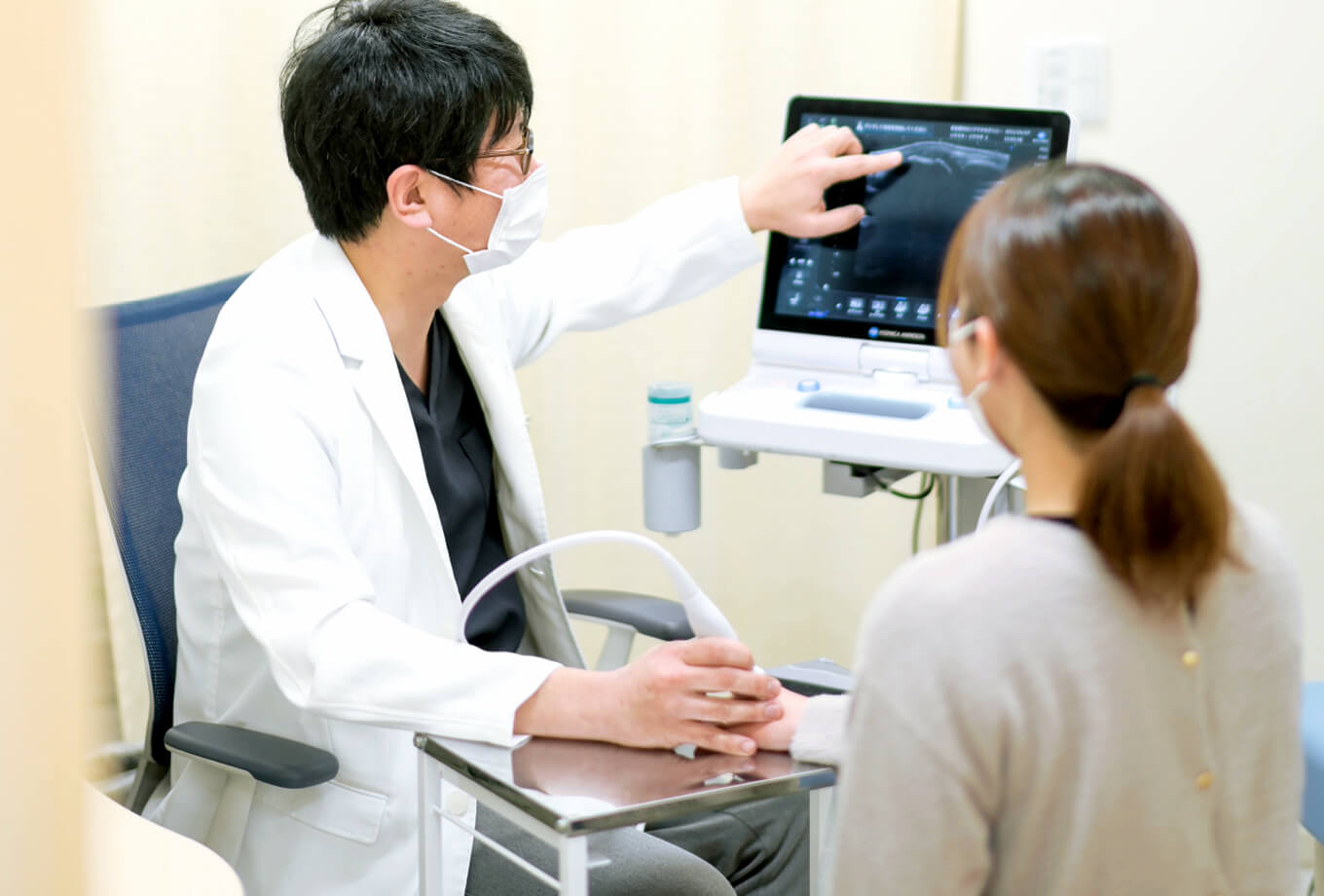 当院はリウマチ・膠原病疾患の専門クリニックですので、関節の診察や血液検査、レントゲン検査、関節エコー検査を行い、「リウマチかどうか」を総合的に判断し、関節の状態と併せて合併症や副作用などを管理することが可能です。