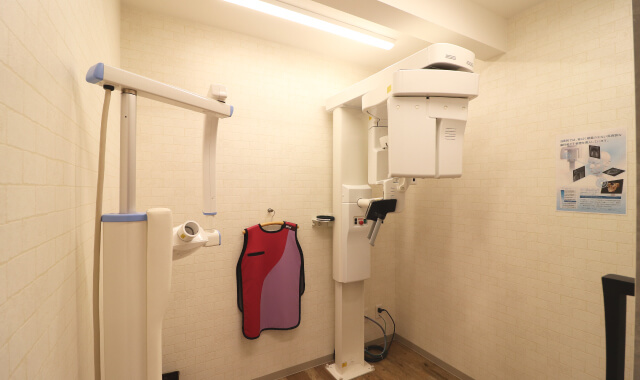 歯科用CTは立体映像で、歯根や神経、血管の位置、顎の骨の厚みなどを鮮明に映し出せるため、精密な診査・診断を行うことができます。デジタルレントゲンは、従来のレントゲンと比べて被ばく量が1/10ほどに抑えられるため、身体への負担の少ない検査が可能です。