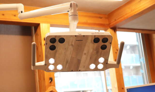 診察中にどんな治療をされているのか分かりやすいよう、大きなミラー付きの照明を設置しています。
