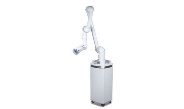 治療中に飛び散った唾液や、歯や詰め物・被せ物などを削った粉塵を瞬時に吸い込む機械です。診療室内を常に清潔に保ち、院内感染のリスクを低減します。