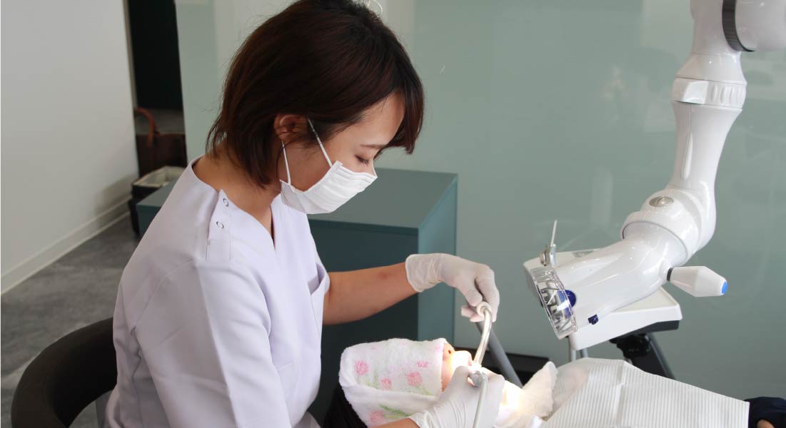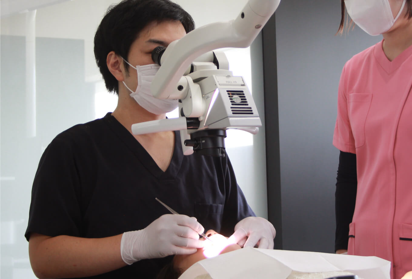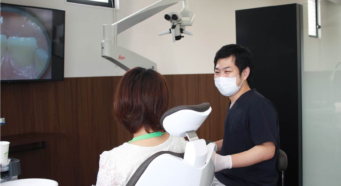 口腔内の術野を拡大して見ることができるマイクロスコープを使用しています。