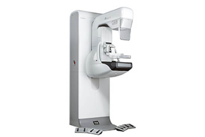 乳房をレントゲン撮影する検査で、マンモグラフィ撮影認定資格を持った女性レントゲン技師が撮影します。乳房全体が撮影されるように、左右の乳房を片方ずつ圧迫して撮影し、しこりや石灰化などを見つけ出すことができます。マンモグラフィはエコー検査では発見が難しい細かい石灰化を見つけることができます。