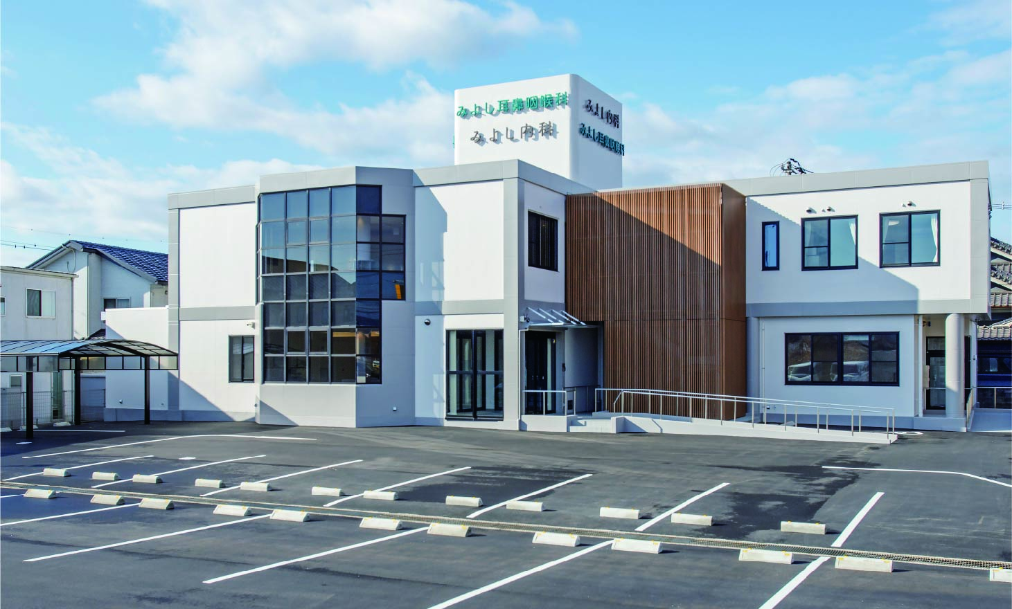 車でみよし内科にお越しの場合、駅家モール向かい、駐車場有。