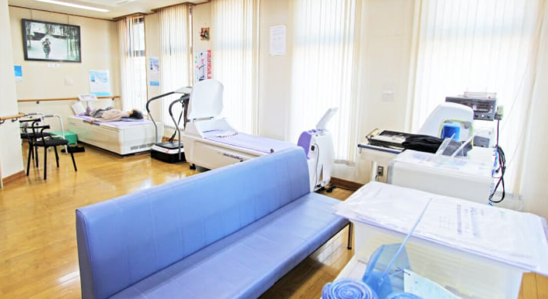 心身に障害を持たれた方に対して、生活上の問題点の改善や障害箇所の機能回復に向けた治療・支援を行っています。物理療法機器として、ウォーターベッド・ホットパック・ダイエットトレーナー・オートヘンサー・半導体レーザー治療器などを完備し、様々なリハビリテーションに対応しております。