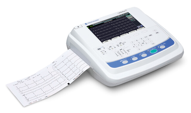 心臓の電気活動を記録する装置で、主に循環器内科での検査や診察に使用する医療機器です。不整脈や心疾患の早期発見に役立ち、迅速かつ正確な診断が可能です。