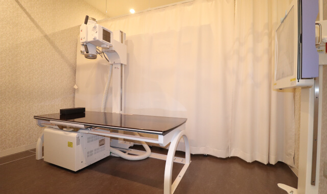 X線を用いて体内の構造を画像化する医療機器です。骨や臓器の異常を確認するために広く使用します。検査時間はおよそ5分程度で、さまざまな疾患の診断に役立ちます。