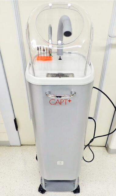 義歯やマウスピースの切削紛を吸引し、粉塵の飛散を防止します。
