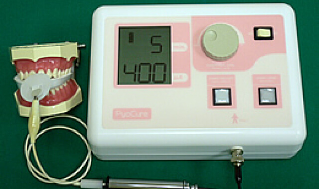 エナメル質を強化するフッ素を+と−にイオン化して導入する機械です。