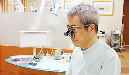 - 先生が診療の際に心がけていることは何ですか?歯科治療を行う上で“コミュニケーション”は非常に大切です。「患者さんの伝えたいことを理解する余裕」「医師の判断や治療方法を分かりやすく伝える丁寧さ」「口腔内カメラのモニターや模型などいろいろなツールを使って伝える工夫」など、患者さんにとってよりよい治療を行う為にさまざまな努力をしてまいります。