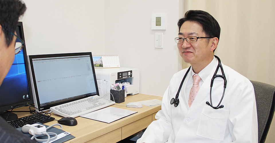 先生が診療の際に心がけていることは何ですか?当クリニックには、レントゲン、CT、呼吸機能検査、心電図、簡易睡眠ポリグラフ検査など専門的な医療機器を完備し、正確な診断、最善の治療を提供できるよう心がけています。多くの呼吸器疾患や全身の癌の発生に影響する喫煙から患者さんを守るために禁煙外来を開設し、ニコチン依存症の治療も積極的に実施しています。また肺がんの早期発見を目的とした低線量肺がんCT検診も行っています。