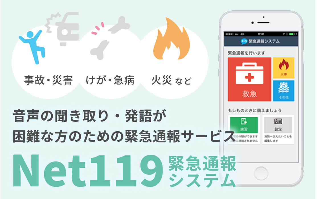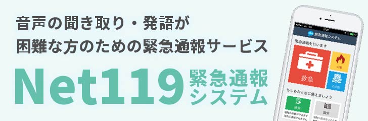「Net119(Net119緊急通報システム)」とは、広島市消防局、尾道市・三原市消防指令センター、備北地区消防組合(三次市・庄原市)が管轄する地域を対象に、聴覚や発語の障がいなどにより音声での緊急通報(119番)が困難な方が、スマートフォンなどを利用してどこからでも119番通報を行い、消防車や救急車の要請ができるシステムです。