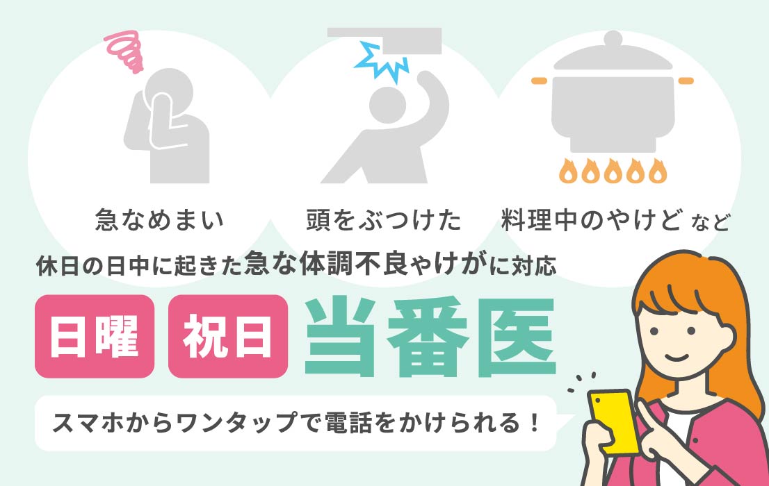 「日曜・祝日当番医」ページでは、広島県内で日曜日・祝日に診療を行っている当番医の病院・クリニック情報を掲載しています。