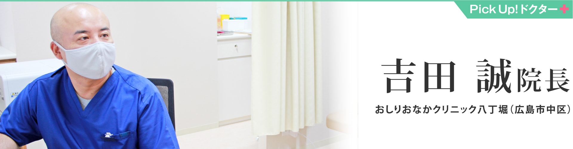 広島市中区八丁堀にある痔(いぼ痔:痔核、切れ痔:裂肛、穴痔:痔ろう)、便秘、腸活の専門クリニックです。痔や便秘などでお悩みの方はぜひ早めに受診することをお勧めします。痔も便秘も放置したり自己流の治療を続けると間違いなく悪化してゆきます。早く治療を始めれば早く治ります。勇気を出して受診してください。