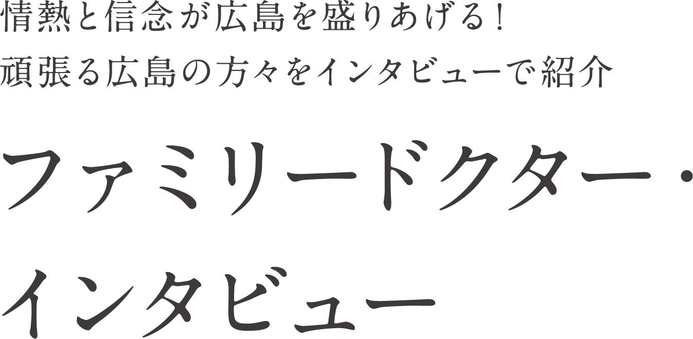 広島において頑張っている人、志高い人、逆境に負けずに楽しんでいる人達を知って欲しいと思い「ファミリードクター」では、様々な活動に取り組んでいる方達をご紹介いたします。