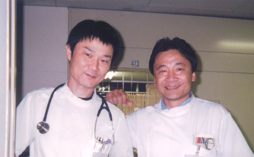 マツダ病院での研修医時代の写真(現副院長の月坂先生と共に)