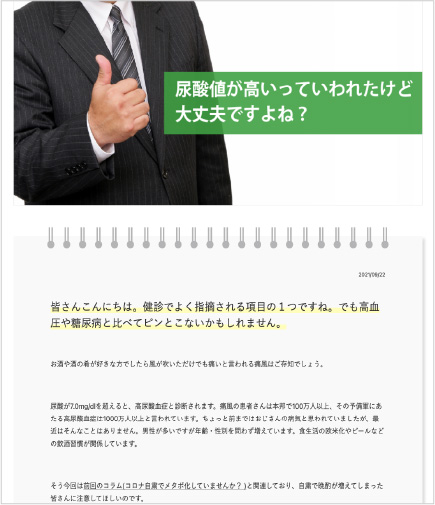 ホームページではなかなか見えづらい院長自身の思いや姿勢、少しだけプライベートなことまで、院長の個性が見える記事を掲載することで、ユーザーに病院・クリニックのことをより身近に感じていただけるでしょう。