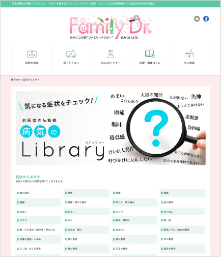 病気のライブラリーは、気になる症状から病気を調べることができるコンテンツです。