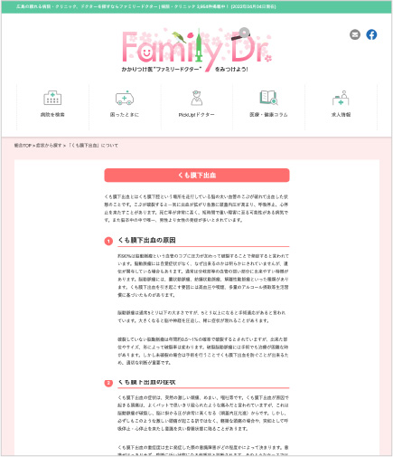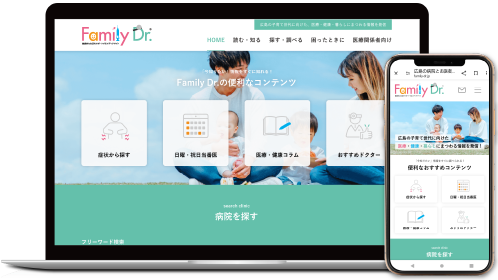 医療メディアサイト「ファミリードクター」とは、広島県の医療・健康・子育てを主軸としたメディアサイトです。