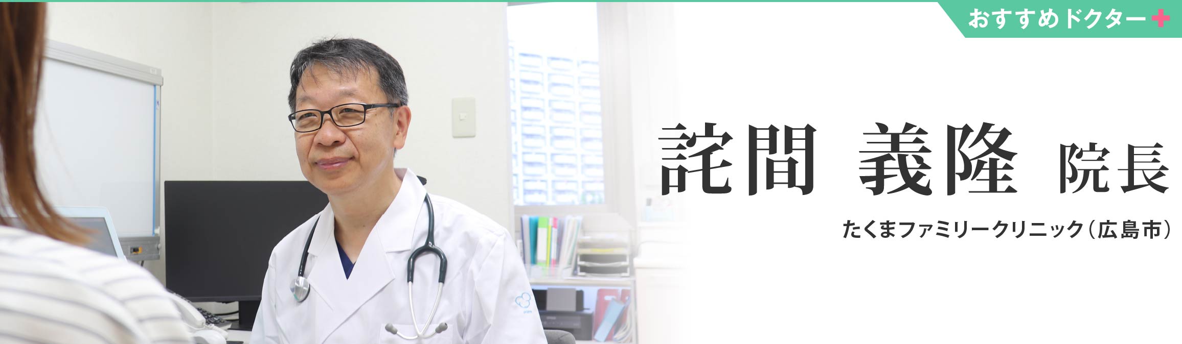 はじめまして。たくまファミリークリニック院長の詫間義隆(たくまよしたか)と申します。
