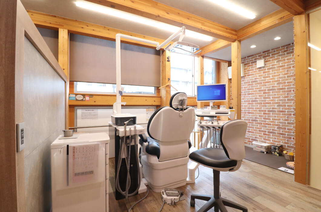 大きなミラー付きで、口の中の状態や治療の様子も確認できます