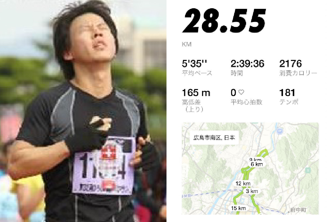 2012.11.03 平和マラソン(左)と、2023年の最長ラン記録(右)
