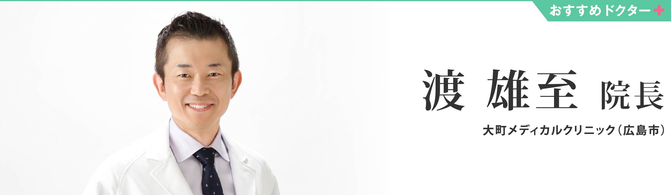 この度、安佐南区で「大町メディカルクリニック(旧称:秋山クリニック)」を継承することになりました院長の渡 雄至と申します。