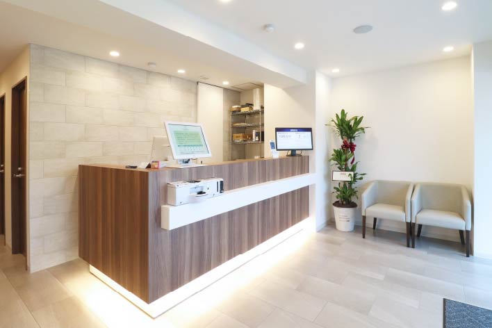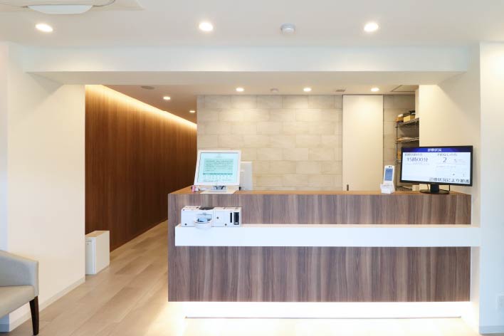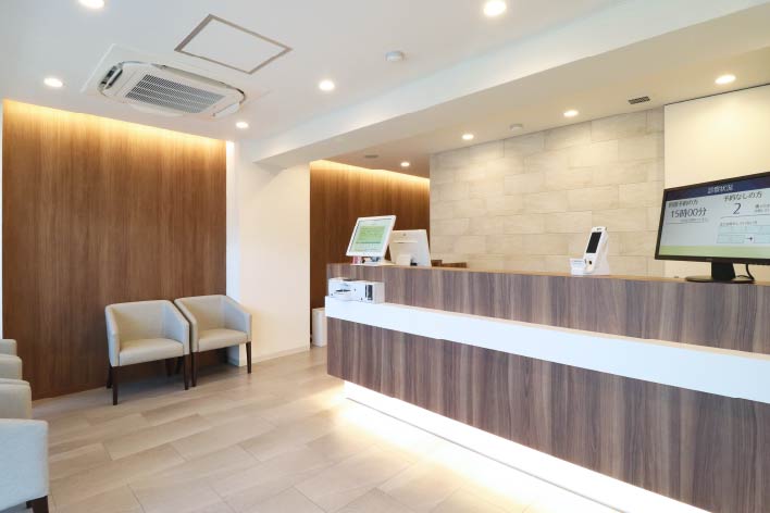 木目調の看板や内装で、温かく居心地の良い雰囲気のクリニックです。