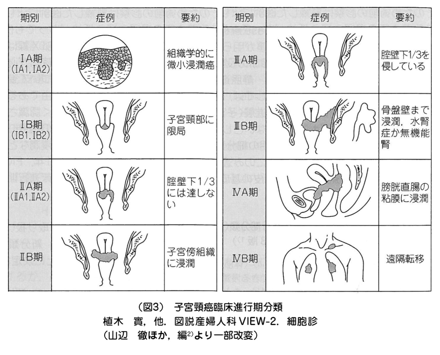 子宮体がんや卵巣がんなど、多くの癌では手術的・病理学的診断に基づいて進行期分類が決定されていますが子宮頸がんのFIGO進行期診断では治療前の臨床的検査結果により決定されます。そのため術前の診察は熟練した医師により、必要があれば麻酔下で行われることが望ましいのです。このFIGO進行期の問題点は、医師の診察で決定されることから施設間あるいは医師間での大きなバイアスが生じることです。さらに現状では画像診断をどのように取り入れるのかのコンセンサスがなく、現在FIGO腫瘍委員会では画像診断を取り入れた新たなFIGO進行期についての議論が行われています。本邦では、TNM分類に画像診断を取り入れ、画像所見を腫瘍の進展度合いやサイズの評価、実質臓器転移、リンパ節転移の評価に用い、内診、直腸診による局所所見を加味してTNM分類を診断するということにしています。