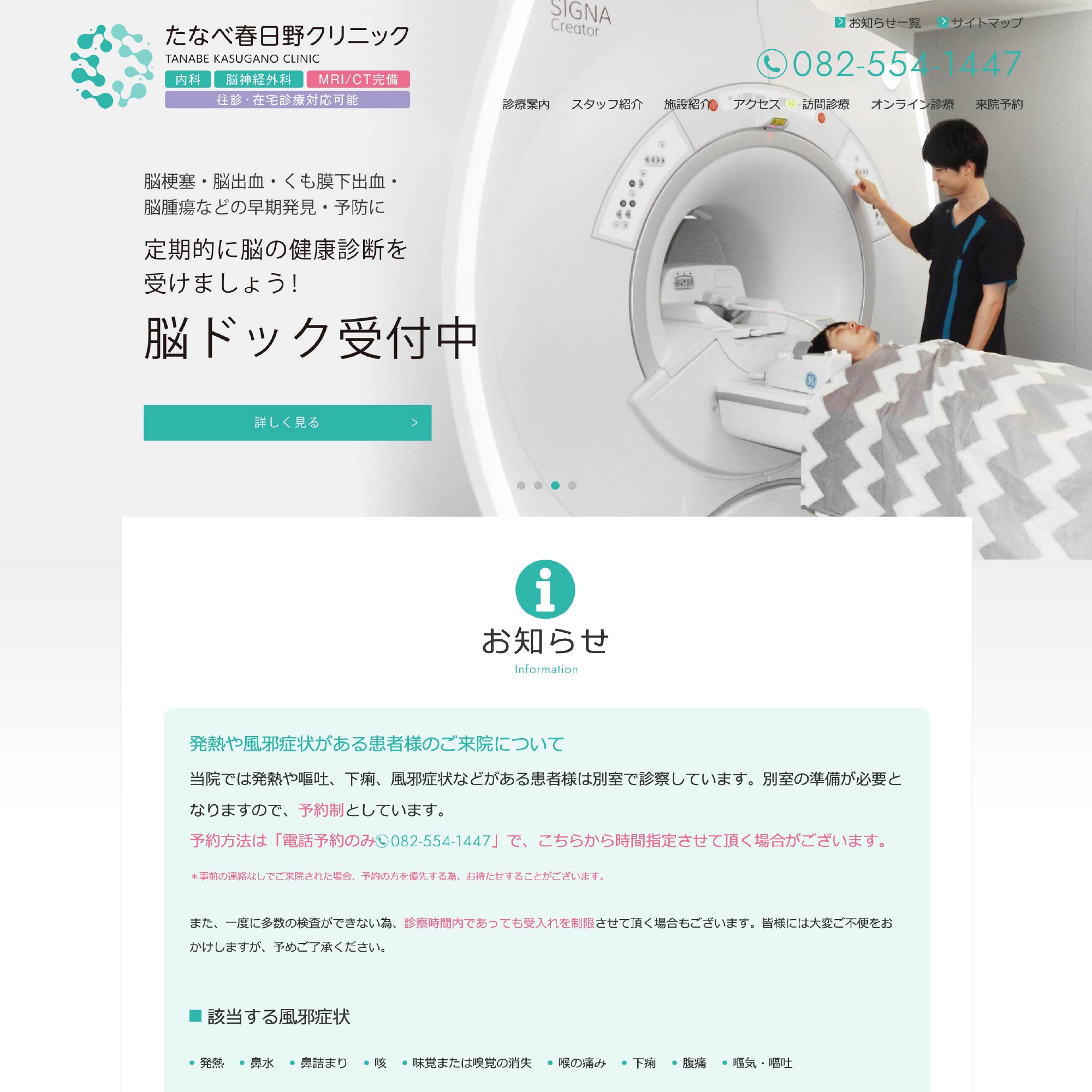 たなべ春日野クリニック(広島市)では一般内科・脳神経外科を中心に生活習慣病・めまい・頭痛・腰痛・認知症治療なども行っています。またMRI・CTを完備し、脳ドックや各種健診・予防接種も可能です。痙縮や片側顔面けいれん治療にボトックス治療も行っています。