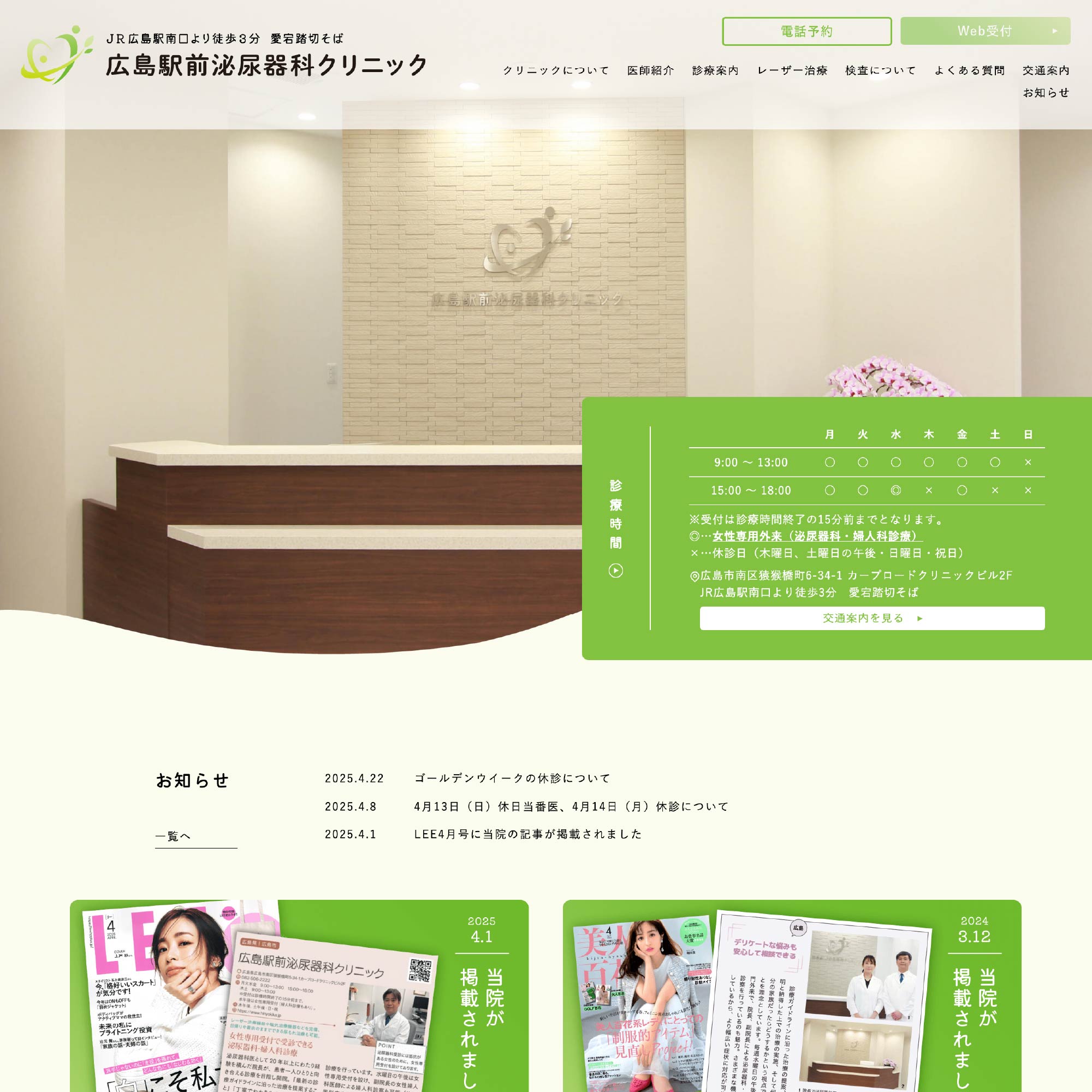 広島駅前泌尿器科クリニック ホームページ | ファミリードクター:制作実績